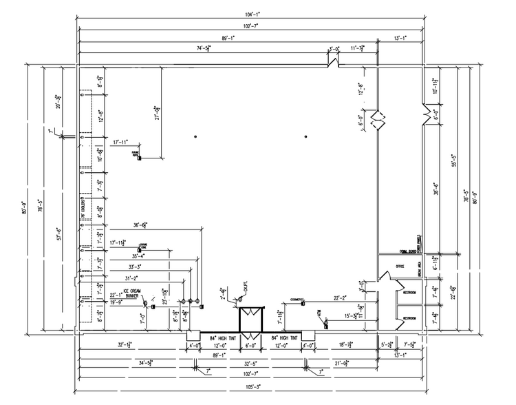 - L'espace a des portes de chargement doubles sur le côté du bâtiment pour les livraisons