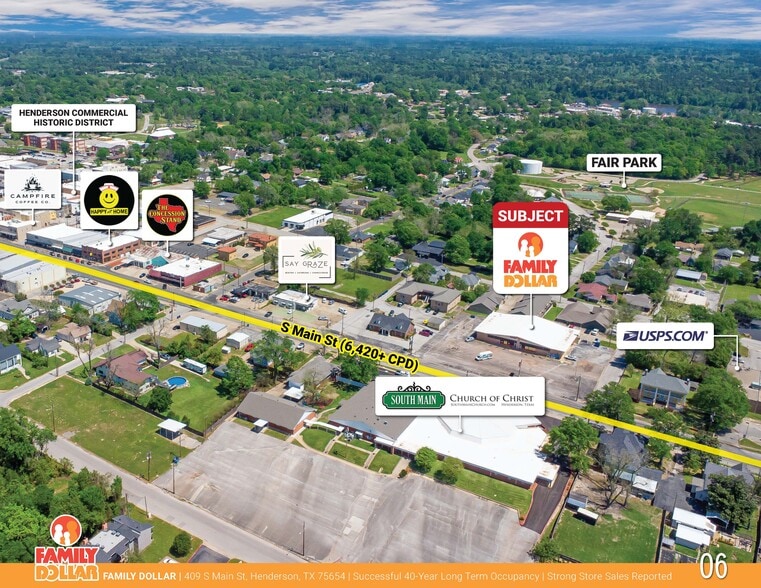 The EngVest Group is pleased to present the opportunity to acquire the fee-simple interest in a Family Dollar located at 409 S Main Street, Henderson, TX 75654. This property offers investors the rare chance to own a well-established location with over 40 years of operating history, demonstrating the tenant’s long-term success and commitment to the site. Backed by a strong corporate guarantee from Family Dollar Holdings, Inc., this location operates under a NN lease structure with minimal landlord responsibilities, offering passive income in a stable and essential retail segment.
