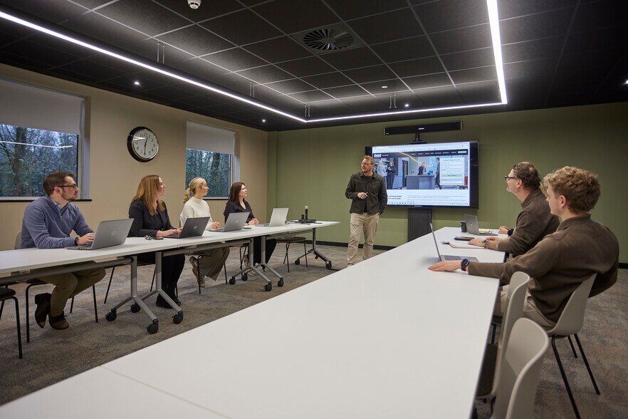 Self-contained, Grade A headquarters office building. Prominent headquarters office building facing the M6 with generous car park allocation of 154 spaces. Also includes, four pipe fan coil air-conditioning system, full access raised floors, sound insulation, solar control double glazing and LG7 lighting.