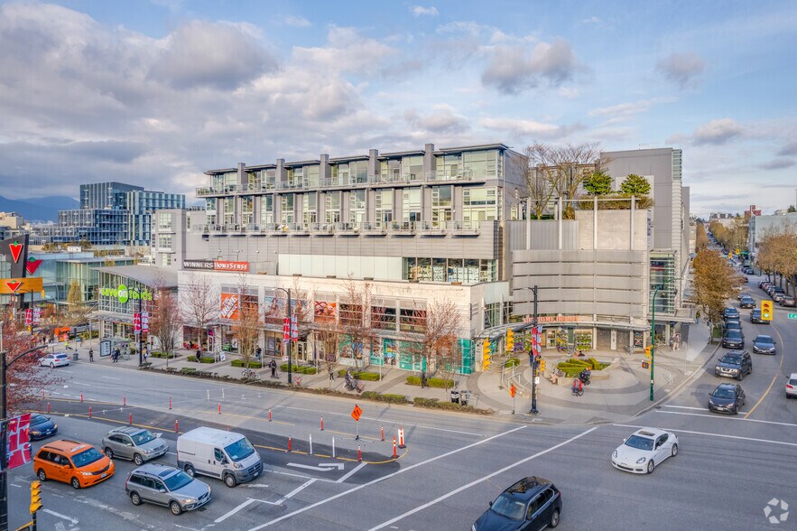LE BÂTIMENT - THE RISE Rejoignez d'autres détaillants prospères au Rise le long de West 8th, y compris Winners HomeSense et Home Depot, Uncle Fatih's Pizza, The Rise Dental Centre, EB Games, West Coast Poke et Sense Eyewear. Les détaillants le long de la rue Cambie incluent Purdy's Chocolatier, Change Lingerie, Telus Mobilité, Save-On-Foods, Home Deposit et Starbucks. Cette zone à haute densité est le troisième plus grand quartier commerçant de Vancouver après Pacific Centre et Oakridge Shopping Centre et offre une grande population diurne et nocturne. Un vaste stationnement souterrain payant est disponible. Il y a également une zone de verrouillage pour vélos et des installations de douche séparées pour hommes et femmes avec des casiers d'utilisation quotidienne pour le personnel de vente au détail. Le projet est idéalement situé à la base de la rue Cambie, facilement accessible par le Skytrain de la ligne Canada et les bus locaux, et à proximité du centre-ville de Vancouver.