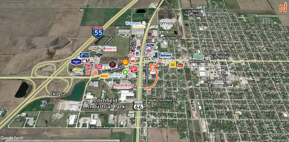 0.961 Acre Redevelopment Site – The Best Signalized Corner in Litchfield. Across from the famed Route 66 Museum, perfect for Retail, Banking, C-Store.