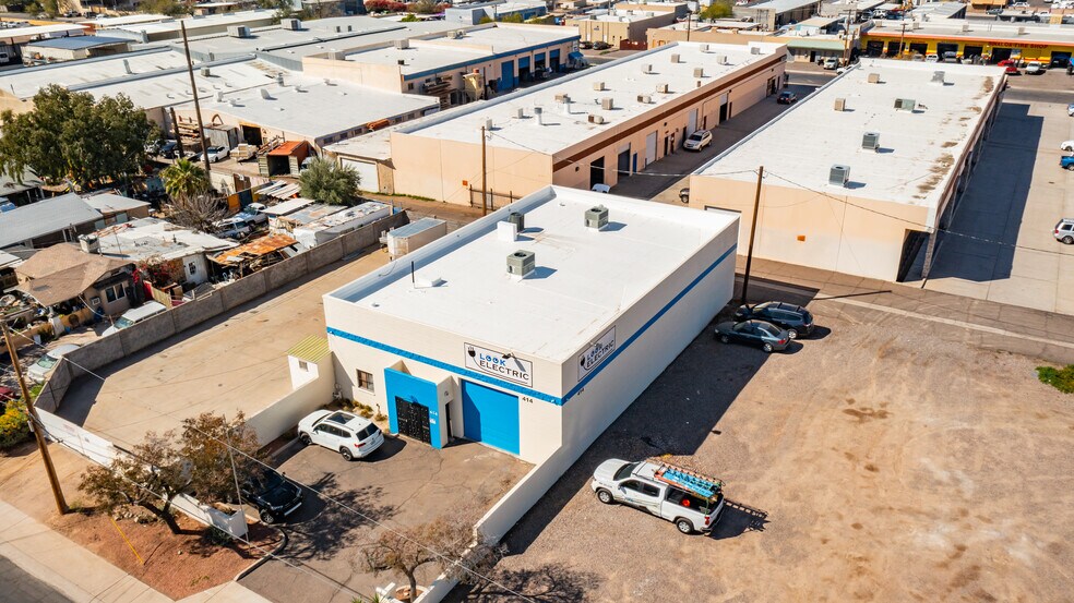 Available for immediate occupancy, 414 S Grand Ave delivers a turnkey industrial solution in Mesa’s established business district. This ±4,000 SF building integrates ±2,200 SF of office space with ±1,800 SF of warehouse, creating a balanced environment for companies requiring both administrative and operational capabilities. The property includes a ±6,200 SF private fenced yard, perfect for outdoor storage or vehicle staging. Inside, tenants benefit from two new 5-ton HVAC systems, ensuring comfort in the warehouse, and a thoughtfully designed office layout featuring reception, multiple private offices, restrooms, and dedicated IT and copy rooms. The warehouse boasts 14-foot clear height, two grade-level doors, and a mezzanine for supplemental storage. Electrical capacity of 240 volts, 400 amps, and 3-phase power supports diverse industrial uses. Situated near W Broadway Rd and Country Club Dr, with quick access to Loop 101 and US-60, the location offers seamless regional connectivity. At a competitive lease rate of $5,000 per month NNN, this property provides exceptional value for businesses seeking a secure, functional, and well-located facility in Mesa’s growing industrial hub.