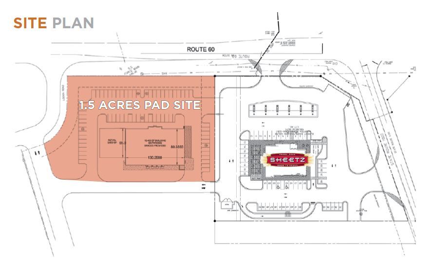 Site de pavé de 1,5 acre et moins Adjacent à Sheetz Nombre de trafic : 18 000 ± VPD - Route 60