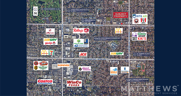 - HIGH TRAFFIC COUNTS: Strategically situated on Marconi Ave, a high traffic corridor featuring approximately ±21,000 vehicles passing per day.