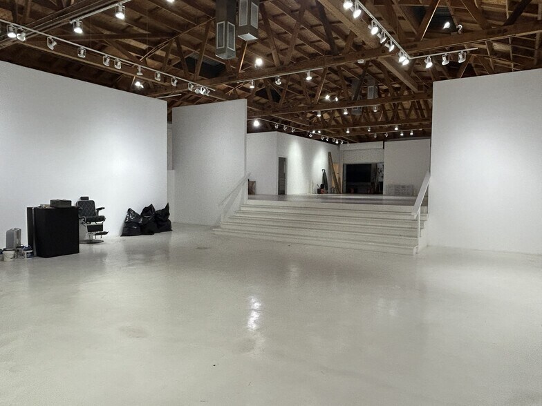 Beautiful split level, former gallery space in the Arts District. The space is within walking distance of all the amenities in the Arts District and Little Tokyo. The building features sandblasted wood trusses, custom lighting and white painted concrete floors. There is currently one large loading door with the ability to open another. The square footage includes an approximately 450 sf enclosed dock used for storage.