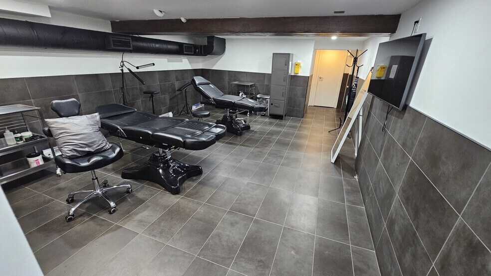 Cette unité au niveau inférieur, aménagée avec soin, offre un intérieur propre et moderne, idéal pour une variété d'usages tels que bureaux, studios ou services.