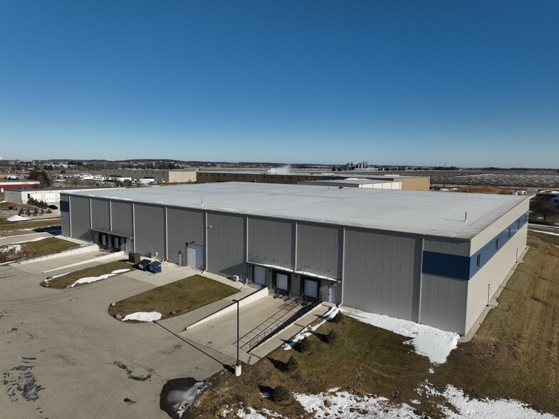 Class A industrial facility with four docks, two commercial delivery doors, one at-grade door, 30-foot ceilings, and easy I-90/39 access located within Janesville Logistics Hub’s east side.