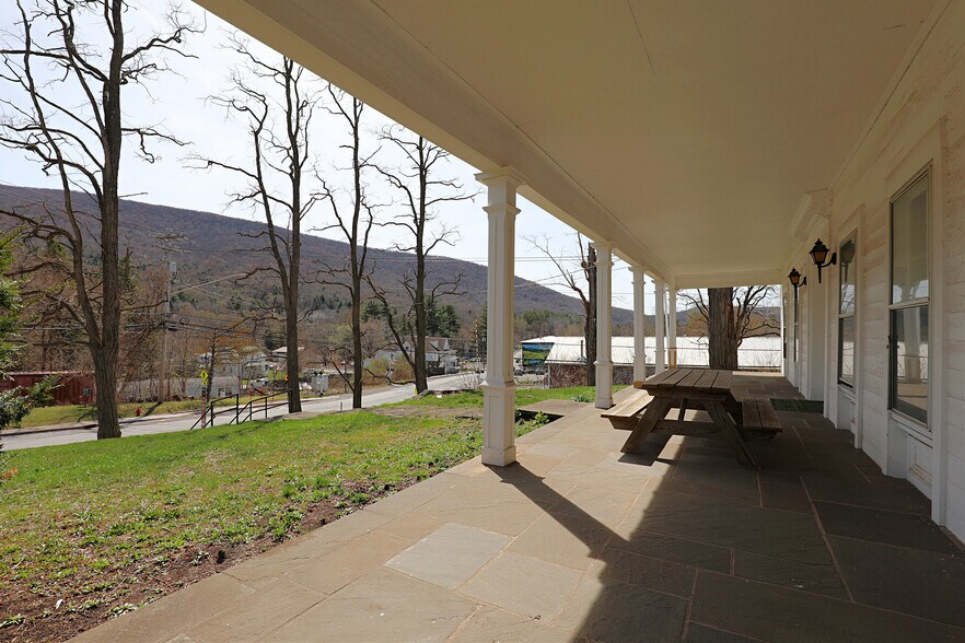 Perché sur une butte d'angle au centre du hameau d'Arkville, dans le comté de Delaware, cet édifice historique majestueux attend sa prochaine utilisation. Avec près de 8 000 pieds carrés sur trois niveaux, situés sur un peu plus d'un acre avec des possibilités infinies. Une partie de ce bâtiment remonte aux années 1700 avec des ajouts et des rénovations dans les années 1900 et avait été utilisée comme taverne, pension, appartements et son utilisation la plus actuelle comme siège du Catskill Center for Conservation and Development. Il fait partie d'un district de zonage commercial commercial de la Colombie-Britannique, ce qui permet de nombreuses utilisations possibles. À l'heure actuelle, il y a une série de bureaux bien aménagés ainsi qu'un hall accueillant, une salle à manger avec cuisine, une salle de stockage et des toilettes au premier et au deuxième étage. Le troisième étage est rempli de lumière naturelle et de quelques espaces plus grands ainsi qu'une section partiellement inachevée avec quatre autres pièces possibles. De belles moulures partout ainsi qu'un plancher de bois en planches larges. Les propriétés environnantes comprennent le Delaware and Ulster Heritage Railroad, juste en face de la rue, ainsi que plusieurs magasins, une distillerie et des restaurants. Le village de Margaretville se trouve à seulement 1 mile à l'ouest et offre une variété de commodités. Belleayre Ski Lodge se trouve à seulement 10 minutes à l'est (+/7 milles). La propriété est desservie par des aqueducs et des égouts municipaux. Il y a une résidence indépendante de +/- 650 pieds carrés, électrique et plomberie avec un ensemble de panneaux solaires qui desservent la propriété.