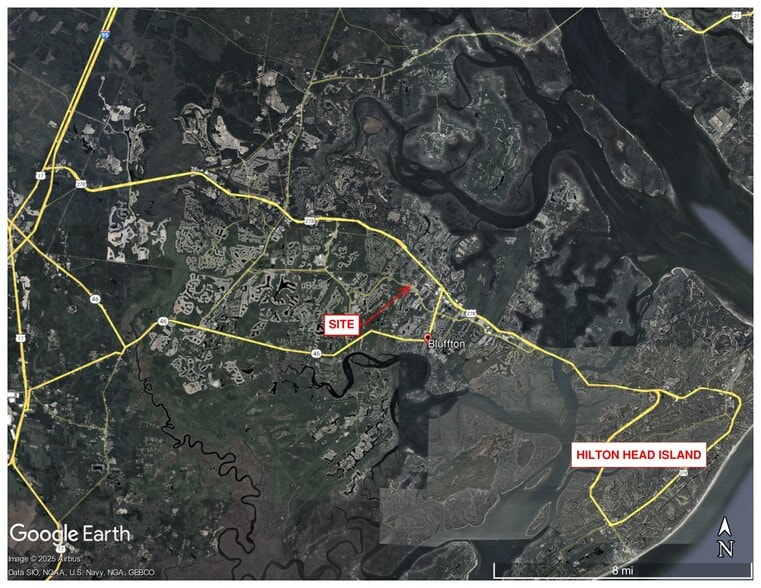 Surrounding traffic counts underscore the strength of this location: Bluffton Parkway exceeds 25,000 VPD, while Simmonsville Road carries more than 12,600 VPD directly adjacent to the property. This combination of access, exposure, and zoning flexibility makes the site ideal for user-owners, investors, and developers seeking a strategic foothold in the heart of Bluffton’s commercial corridor.