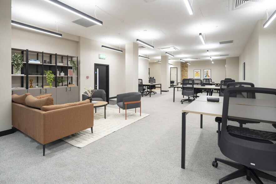 Welcome to 44 Paul Street, where functionality meets style in a thoughtfully designed workspace. As you enter, you'll be greeted by an impressive reception area complete with a commissionaire and a convenient passenger lift. The newly refurbished first & second floors offers a versatile, fully fitted setup, primed for immediate use. The open office layout creates an inviting flow, complemented by a spacious meeting room and a dynamic breakout area. Here, you’ll find a fully equipped kitchen with a stylish island and bar seating, plus collaborative tables for team gatherings and casual discussions.