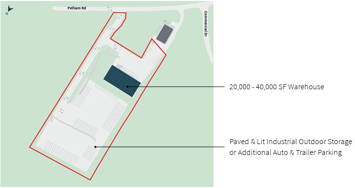 JLL is pleased to present a 20,000 - 40,000 SF industrial build-to-suit opportunity available for lease at 44 Pelham Road in Salem, NH. The proposed industrial development offers unique flexibility, adaptable to various square footage requirements, and with capacity to provide ±4 acres of paved and lit industrial outdoor storage or additional auto and trailer parking as needed. The convenient Pelham Road location is less than 2 minutes from I-93 via Exit 2, providing exception logistics access to Southern New Hampshire and Greater Boston.