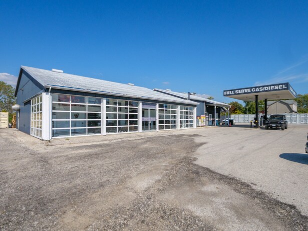 Station-service entièrement équipée avec auvent, 2 pompes à essence / 4 tuyaux pour essence/diesel.