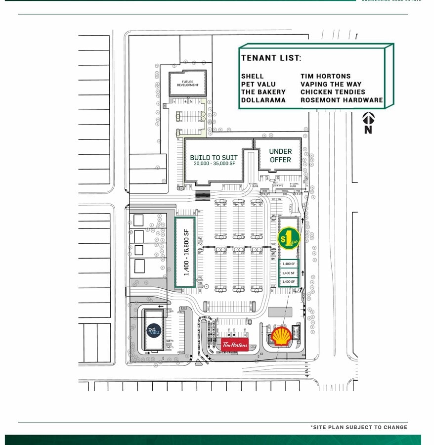 Faites l'expérience de la commodité et de la variété dans le tout nouveau centre de vente au détail situé dans un endroit très fréquenté. Avec une gamme variée de locataires, dont Dollarama, Vaping and Way, Fresh Slice Pizza, Pet Valu, Shell Gas Station et Tim Hortons, nous offrons tout ce dont vous avez besoin dans une seule destination accessible. Qu'il s'agisse de produits essentiels du quotidien, de friandises ou de fournitures pour animaux de compagnie, notre centre dynamique s'adresse à tous. Faites le plein de votre voiture, comblez vos enviations et magasinez facilement dans notre centre de vente au détail animé. Bienvenue dans votre destination à guichet unique pour plus de commodité et de qualité.