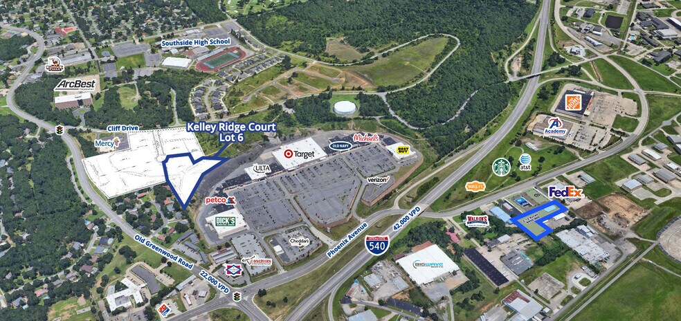 • Commerce de détail de nouvelle construction de catégorie « A » avec une suite de 1 300 pieds carrés à louer à 32,50$ FPS, NNN • Plus de +/- 0,5 acre sur le coin dur pour un bail foncier à 89 000$ par année • Terrain supplémentaire de +/- 2,12 acres à vendre pour 950 000$, au sud de la phase 1 de Phoenix Landing Espace commercial Phoenix Landing à louer, à bail foncier et à vendre situé dans une destination commerçante populaire de Fort Smith et près du pavillon Fort Smith et de l'aéroport régional de Fort Smith. La propriété est entourée de quartiers résidentiels denses et du siège social d'ArcBest Technologies. Les attractions à proximité comprennent le parc aquatique Parrot Island, le parcours de golf Hardscrabble et le centre-ville historique de Fort Smith.