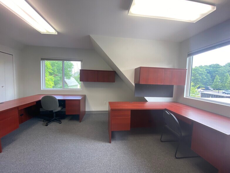 - L'espace de bureau au deuxième étage comprend une entrée privée, des toilettes, une cuisine, un espace principal et une salle ou un bureau privé