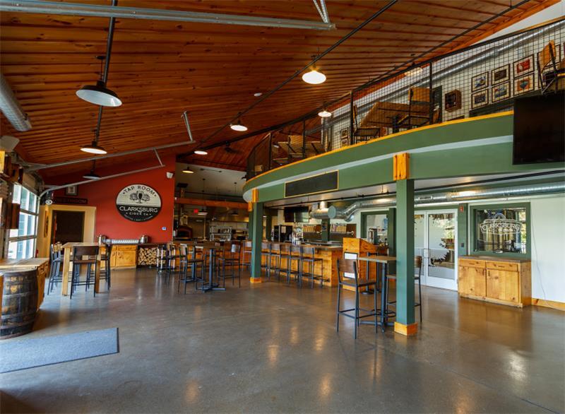 Restaurant/bar space available for lease attached to the production facility for Clarksburg Cider Co., an award-winning producer of hard ciders. The ±3,300 SF tap room features first floor dining space for more than 50 guests, a full-service L-shaped bar with 9 seats and 24 taps, and a mezzanine dining area that seats around 32 with windows overlooking the cider making operation. When weather permits, guests can enjoy seating on the large patio and landscaped grounds. Visible from the dining area and bar, the full commercial kitchen is equipped with prep counters, storage, walk-in cooler, a Forno Bravo pizza oven, fryers, griddle, range, and access to an outdoor grilling station.