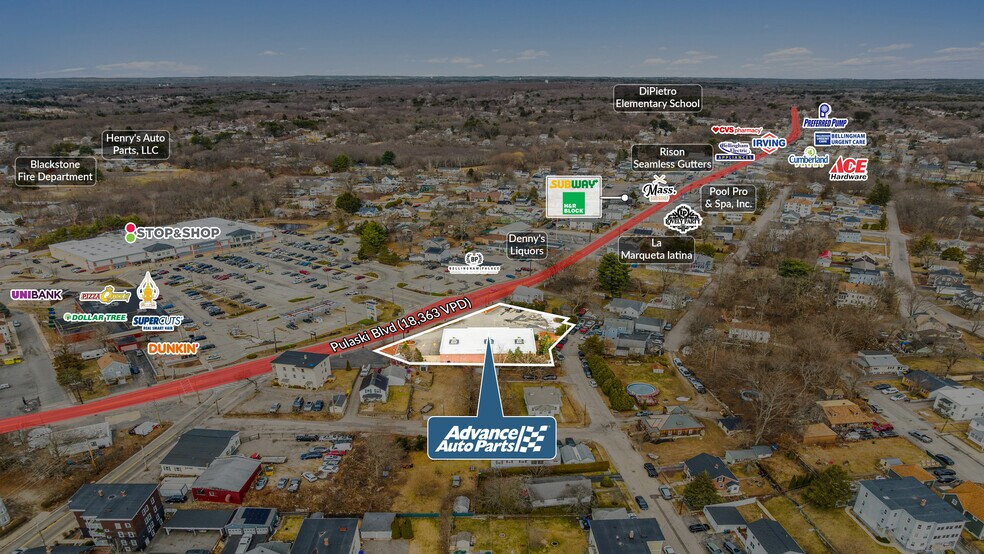 Sands Investment Group is pleased to exclusively offer for sale the 7,000 SF Advance Auto Parts located at 45 Pulaski Boulevard in Bellingham, MA. This investment features a Triple Net (NNN) Lease with more than 9 years of remaining lease term, providing investors with a truly passive ownership structure and minimal landlord responsibilities. The rent has recently been renegotiated to a sustainable and comfortable level for the tenant based on store performance, reinforcing long-term stability and tenant commitment. This offering presents a secure, long-term net-lease investment opportunity backed by a nationally recognized automotive retailer.