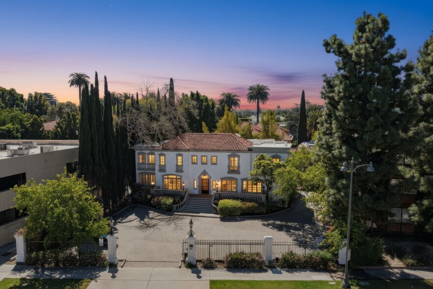 Unique and striking mansion style asset zoned for commercial office use. Ability to create one-of-a-kind flagship/headquarters in the heart of Los Angeles on Wilshire Boulevard in Hancock Park. The gated property offers 3 stand alone structures on-site: The main estate is set up for multi-function office use, including a front reception area, multiple private offices, meeting rooms, a large kitchen, 3 restrooms, and ample storage spaces. A 2nd private staircase for entry/exit points in the rear offers access to the expansive garden deck. The detached 2 story guesthouse / creative studio is equipped with first floor offices, a full kitchen, and 2nd level guest space with remodeled marble bathroom and shower + private deck. Can be used for office space or an apartment / guest quarters for traveling visitors. The bungalow is perfect for an extended meeting area, podcast studio, game room, or additional workspace. The property can be used as a live/work compound with both residential and commercial elements. Ideal for design-driven brands, creative companies, production studios, and professional firms seeking a distinctive flagship environment—including law firms, fashion houses, embassies, media companies, schools, and elevated wellness concepts. Mature Italian cypress trees, vibrant florals and striking bamboo give the property a distinct sense of charm and identity. The landscaped grounds allow for a seamless indoor/outdoor flow. This is a one-of-a-kind asset for a decerening buyer looking to transform their brand into a recognizable icon. Excellent proximity to Larchmont Village, Hollywood, Downtown, and Beverly Hills.