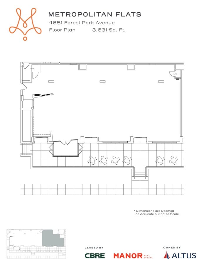 L'édifice Metropolitan Flats est situé à l'intersection très visible de l'avenue Forest Park (17 471 vpj) et de l'avenue Euclid (4 454 vpj), près de Forest Park, l'un des plus grands parcs urbains du pays, accueillant 13 millions de visiteurs par année. L'édifice a également fait l'objet d'une rénovation de 11 millions de dollars, qui a été achevée en 2020.