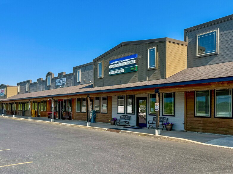 15000 sf Commercial complex offering beautifully appointed and well-maintained spaces for rent. Suitable for office/clinic spaces, retail, service shop, restaurant, a convenience store, spa, hair salon and many more possibilities. High visibility, on the way to Tamarack. Tesla charger on site. The complex offers micro-offices, starting at $450. Suites are 1200 sq feet all the way to 3200 sq. Ample parking. The strip mall suites are currently rented to physical therapy and medical clinic, financial advisor, spa/yoga studio, gym, retail business, natural resources company and several others. The featured suite is suited for a cafe, or a small restaurant. Other units for rent: $1575 per month suite adjusted for a hair salon/spa Microsuites starting at $450 per month