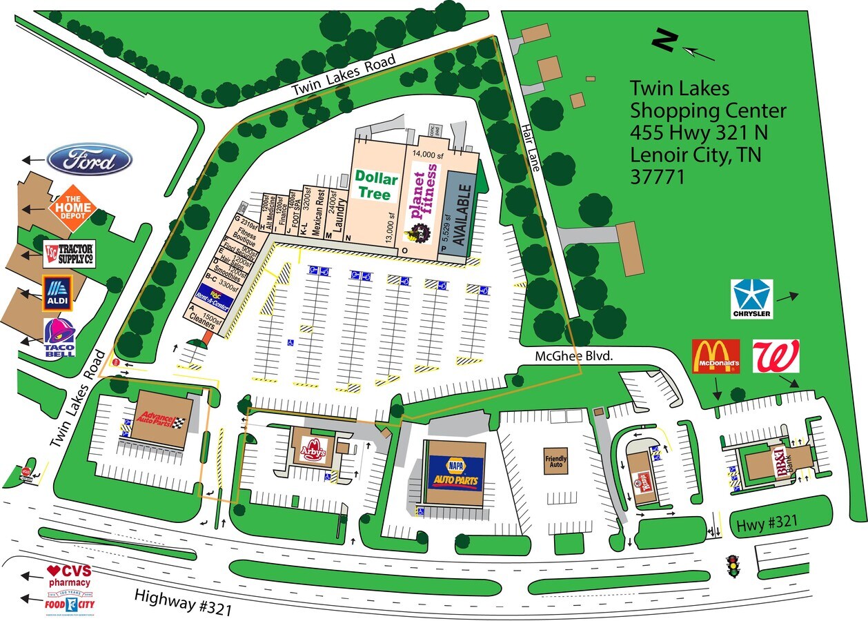 Twin Lakes Shopping Center 455 Highway 321 N 5 529 pi² d'espace disponible • Commerce de détail • Lenoir City, TN 37771