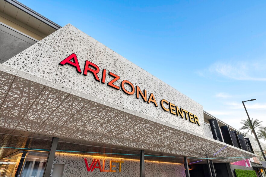 Situé au cœur du centre-ville Phénix avec d'abondantes commodités de vente au détail d'une propriété à usage mixte de 1 million de pieds pieds, y compris ±782 315 SF locaux à bureaux de classe A Options alternatives pour les espaces traditionnels et des utilisateurs de bureaux créatifs Structure de stationnement avec ±2 000 places L'Arizona Center est le cœur du centre-ville de Phoenix. C'est là que le divertissement, le shopping, les événements, les restaurants et les bureaux de premier ordre créent un carrefour unique et centralisé pour tout ce que le centre-ville a à offrir. C'est l'un des points de fierté de Phoenix, tel que suggéré par le public et choisi par la Commission de la fierté de Phoenix. L'Arizona Center est parfaitement situé à proximité de Chase Field, du Phoenix Convention Center, du Symphony Hall, du Phoenix Biomedical Campus, du Herberger Theatre, du campus Downtown ASU et d'autres points focaux de Phoenix, ce qui amène plus de 9 millions de visiteurs au centre-ville de Phoenix chaque année. L'Arizona Center accueille également une forte population diurne de 60 000 professionnels qui travaillent, mangent, font leurs courses et apprécient la beauté de son jardin serein.