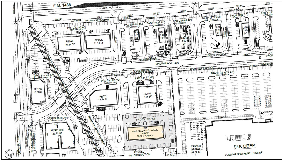 Great Location with Access from FM 1488 and FM 149 and great exposure Location the neighbor property West of Lowes Est of the new HEB across the street .