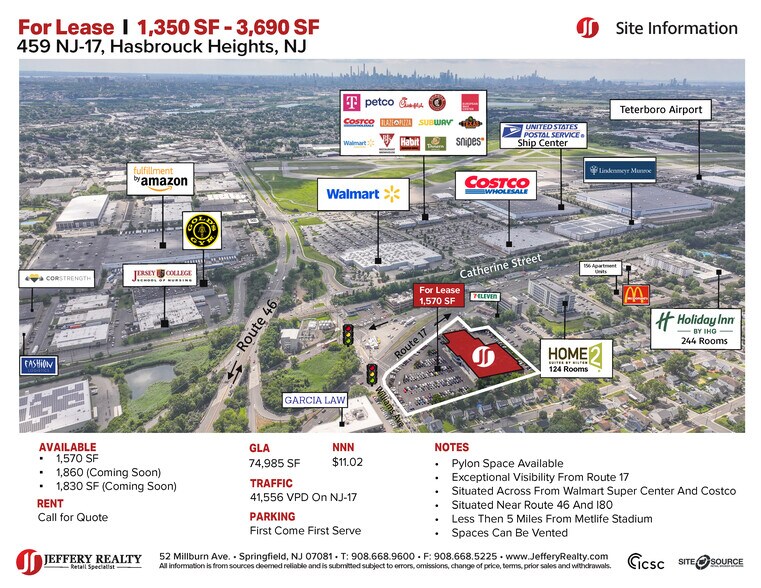 Heights Shopping Center 459 US 17 1 570–5 260 pi² d'espace disponible • Commerce de détail • Hasbrouck Heights, NJ 07604