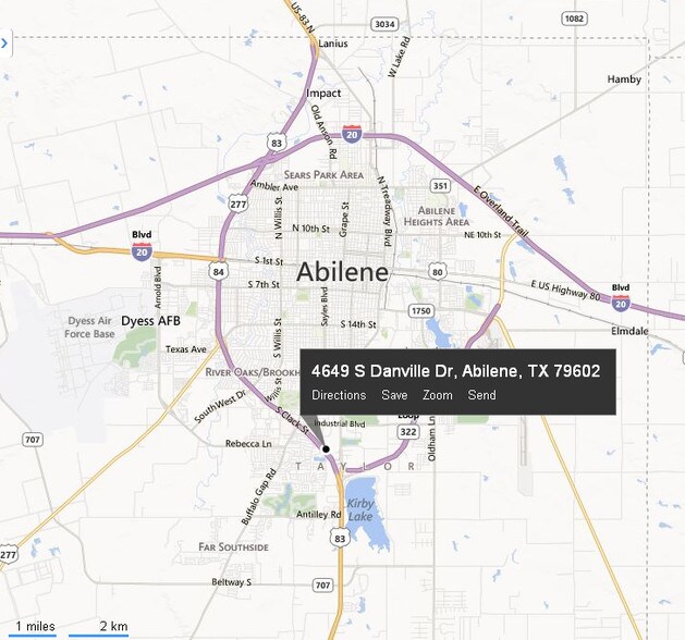 Abilene Sud près de la jonction de l'autoroute 83/84. Près de nombreuses commodités, y compris le quartier industriel et les quartiers commerçants.