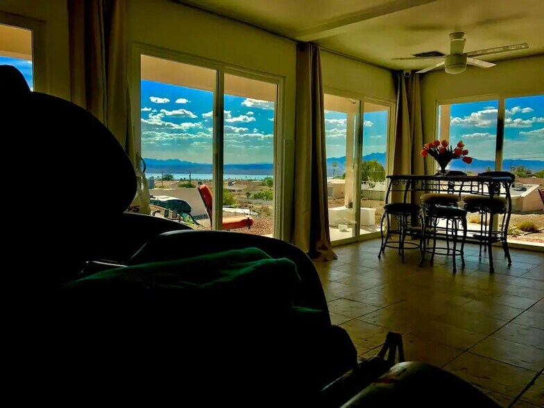 Spectacular sunset income property, averaging $140,000 in revenue. ''Havasu Ever After, '' offers a rare boutique investment opportunity in a prime central location near the island, London Bridge, and downtown. Enjoy breathtaking sunset views from nearly every room in both the main home and guest house. This proven six-figure income property is thoughtfully designed with multiple private-entry units, allowing flexible short-term rentals for a variety of budgets or full-property bookings for weddings and large groups. Property offers up to 8 bedrooms and 6 bathrooms, including main residence, guest house, and additional lower-level studio units with private baths. Recent upgrades include a spa-style Vichy shower wet room, adding additional income potential. Features include 100-ft deep side parking for RV/boat, owned solar with two 50 amp EV charging, 11 mini-split systems, outdoor bar and gazebo, multiple fireplaces, 2 laundry areas, full kitchen + 3 kitchenettes, and security system. Documented rental history available.