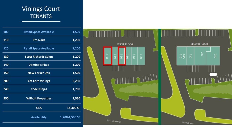 Vinings Court 4691 S Atlanta Rd SE 1 500–3 050 pi² d'espace disponible • Commerce de détail • Smyrna, GA 30080