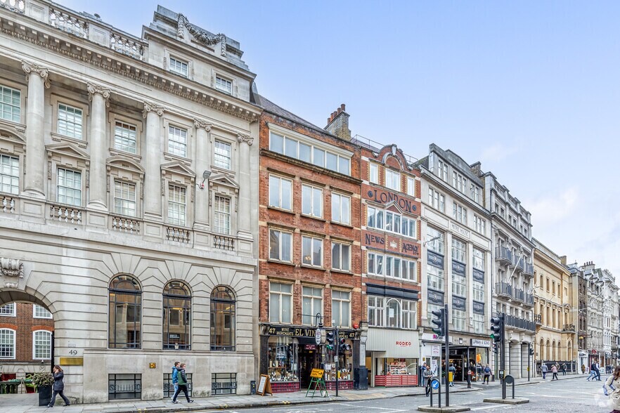 47 Fleet Street spans six levels with a net internal area of 4,529 sq ft / 421 sq m (NIA). The famous El Vino wine bar on the ground floor & basement occupies a total of 2,011 sq ft / 187 sq m, with an attractive street-level frontage, featuring a vintage lamp sign, inviting glass entry, and custom moldings. The upper floors extend to 2,518 sq ft / 234 sq m and are approached via a separate entrance within Hare Place.