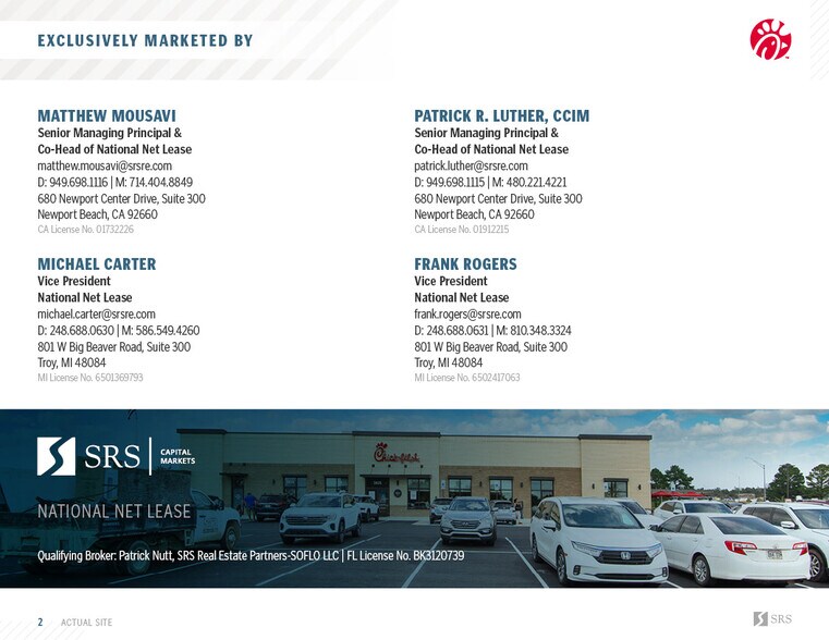 Chick-fil-A | New 15yr Corp Abs NNN 4735 Mobile Hwy 3 500 pi² Commerce de détail Immeuble Pensacola, FL 32506 4 613 423 $ CAD (1 318,12 $ CAD/pi²) 4% Taux de capitalisation