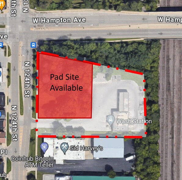 Pad site available up to +/- 1 acres. Build to suit or ground lease opportunities available. Established car wash located on site. High visibility from 124th Street and Hampton Avenue. Very close proximity to I-41 via Hampton Avenue. High density area with strong demographics. Immediate access to Butler, Milwaukee, Wauwatosa and within one mile of Brookfield.