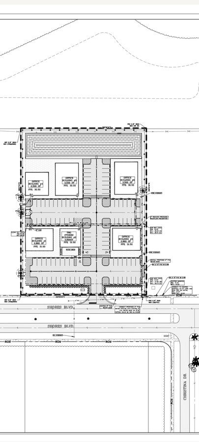 | Min. divisible | 1 000 pi² | Façade | Shores Blvd |