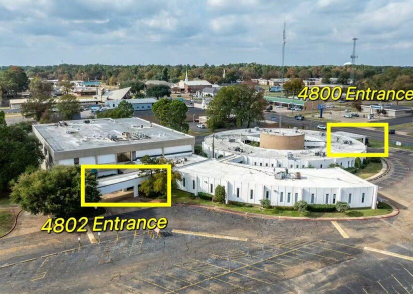 This exceptional property presents a 77,732 square foot, Class C medical office complex, corporate office, warehouse and show room, hospital, floor by floor data centers with ethernet wired directly situated at 4800 and 4802 Texas Boulevard, Texarkana, Texas, 75503. The property consists of three distinct buildings offering a variety of suite sizes to accommodate diverse business needs. Individual building sizes include approximately 16,028 square feet (Circle building), 2,406 square feet (Crescent lobby), 4,310 square feet (Crescent offices), and three tower floors of approximately 17,458 square feet each. The property boasts state-of-the-art infrastructure, including redundant multimode fiber optic internet (20 meg-10gb symmetric), an on-site microwave tower, and a data center on each floor. Over 5,000 square feet of networked office space is available. Additional features include an 18-wheeler dock. The l The property's location in Bowie County provides easy access to major transportation routes and a strong local market. Perfect leasing Medical Office opportunity. Former Christus St. Michaels Health System, Davita, and Collom & Carney Clinic consisting of Circular Building ( Original Collom & Carney Clinic, Crescent Shaped add on to the original Clinic and a three story Tower Building that was the new home of Collom & Carney and the Christus Health System. The property is in the center of business district! 12 minutes away from Texas A&M University, 5 minutes away from Arkansas Convention Center Texarkana, 7 minutes to Central Mall, 2 minutes to Walmart Super Center, 5 -10 minutes to Starbucks, Pizza Huts, Fat Jacks Oyster Bar, McDonald's, several hotels and more.