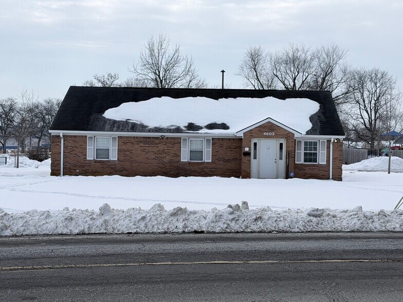 Positioned just one block from Georgetown Road in a high-traffic commercial corridor, this well-maintained, free-standing brick office/retail building offers exceptional visibility, accessibility, and long-term flexibility for both owner-users and investors. The 1,737-square-foot structure sits on a spacious half-acre parcel, providing ample parking and future expansion potential rarely found at this price point. Previously utilized as an optometry clinic and currently operating as a tax service center, the efficient interior layout includes ten private offices or treatment rooms, a welcoming reception and waiting area, a large kitchen or break room, a restroom, and dedicated storage, making it easily adaptable for medical, professional, or general retail use. With eleven existing parking spaces, durable red brick construction, and C-3 commercial zoning that supports a wide variety of business types, the property offers immediate functionality with long-term upside. This is an ideal opportunity for a small business owner seeking to control occupancy costs or an investor looking for a clean, low-maintenance asset in a proven commercial location.
