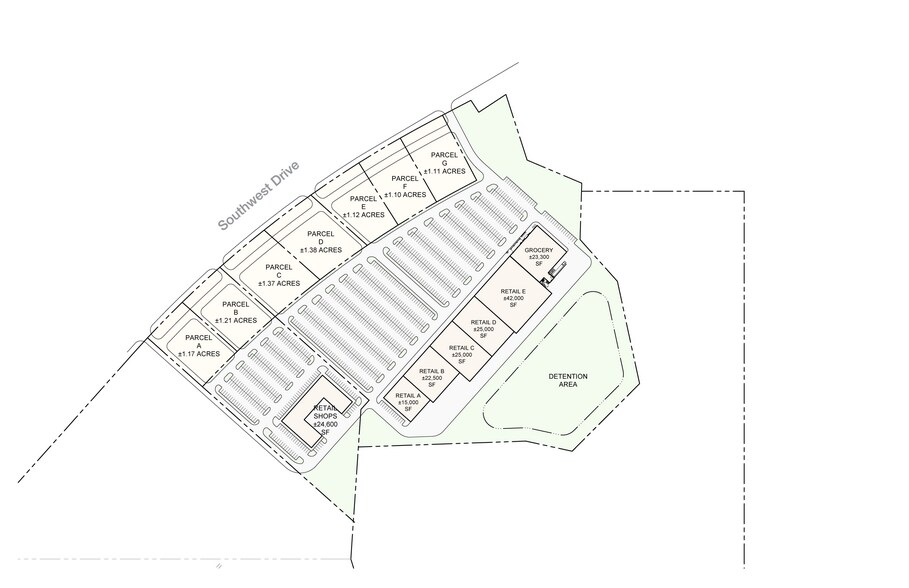 - Utilities delivered to sites; pad opportunities available for sale, ground lease, or build-to-suit.