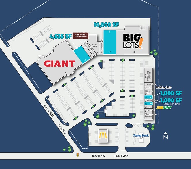 - Located at intersection of Rt. 422 and Mill Road with traff ic counts over 14,000 VPD