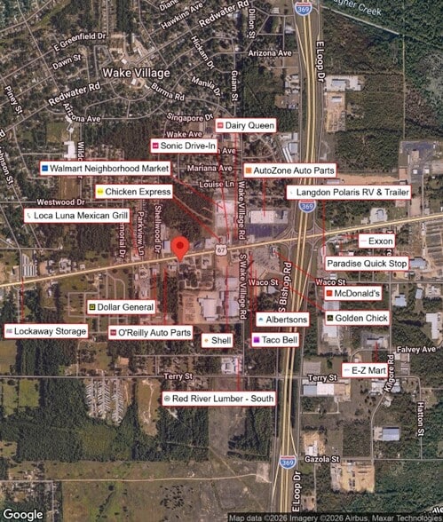 Positioned along highly traveled Highway 67 (West 7th Street), this ±7.79-acre commercially zoned property offers great visibility, access, and redevelopment potential in one of Texarkana’s most active retail corridors. Located just west of I369, the site benefits from strong traffic counts and connectivity.