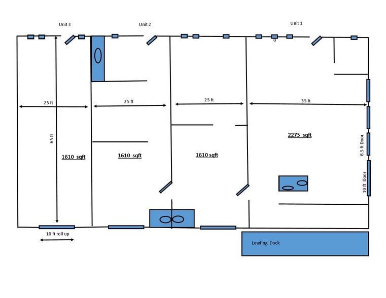 Warehouse with large back yard, roll up doors, and loading dock. Space is available on month-to-month options, offering flexibility for your needs.
