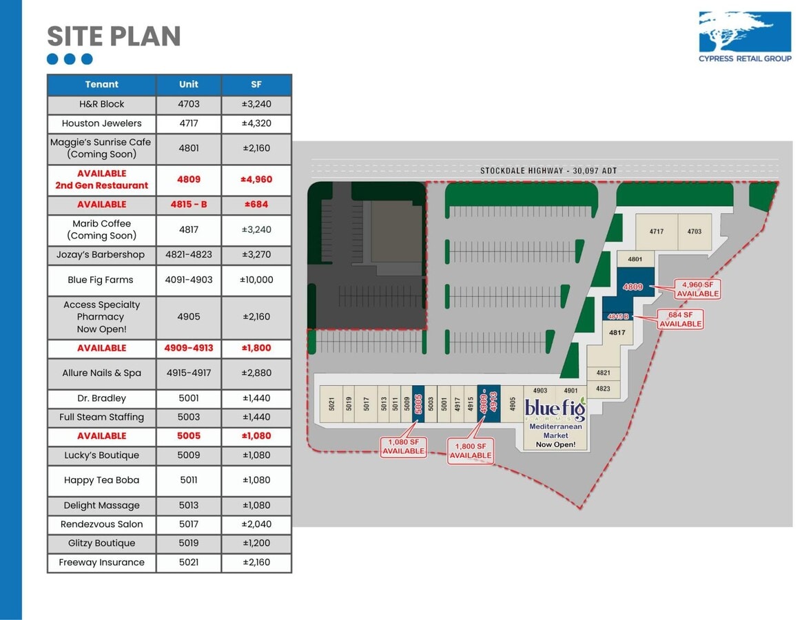 4,960 square feet of retail space available in the Stockdale Fashion Plaza.