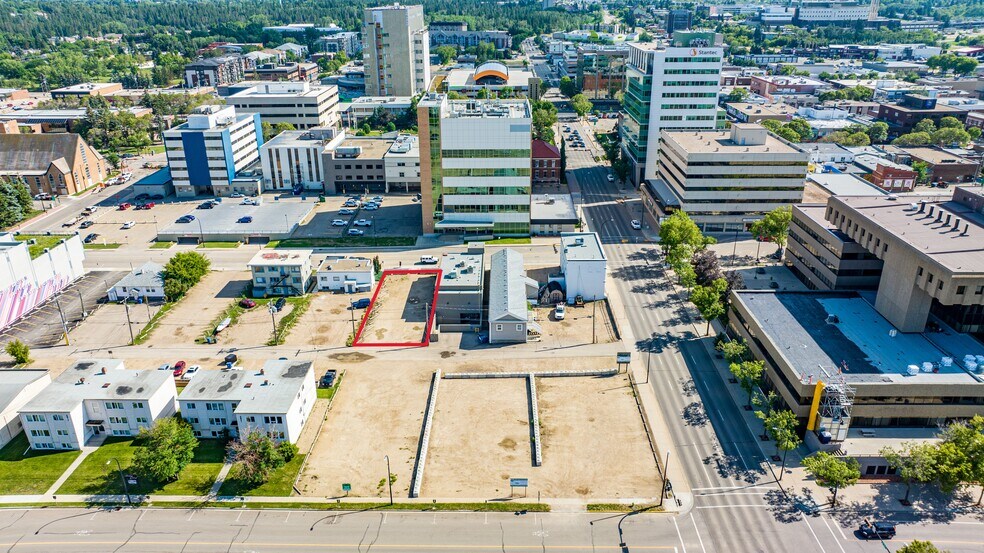 Site de développement de 6 320 pieds carrés au centre-ville de Red Deer juste à côté de la 49e avenue (autoroute 2A) avec des volumes de circulation moyens de 11 000 +/- véhicules par jour et zone C1