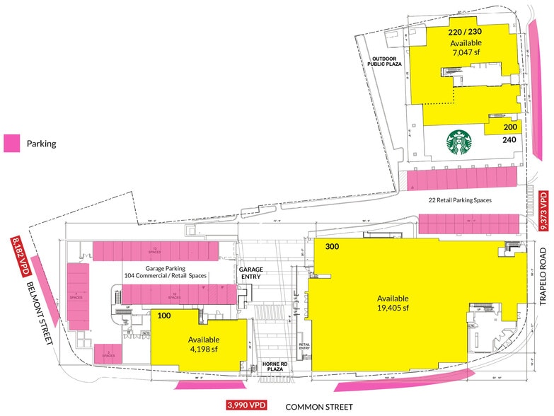 The Bradford 485 Common St 454–31 104 pi² d'espace disponible • Commerce de détail • Belmont, MA 02478