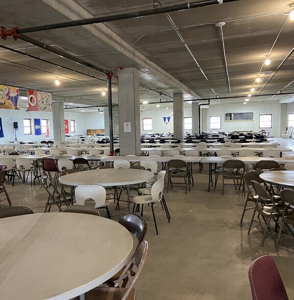 Three-story former municipal building with solid concrete, brick and masonry construction. First floor has a turn-key bar/restaurant/commercial kitchen.