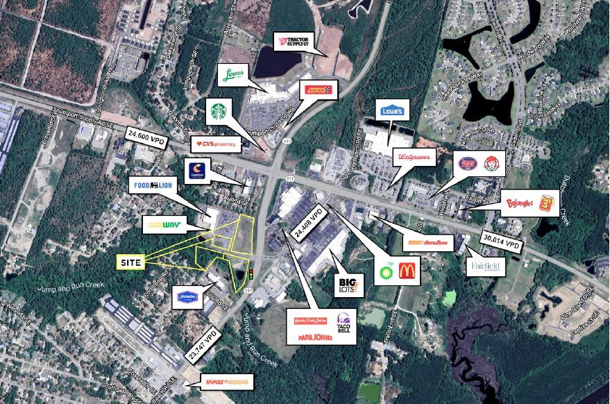 -Le comté de Brunswick est le comté à la croissance la plus rapide en Caroline du Nord, avec une croissance démographique de 85 % depuis 2000 et une croissance démographique de 72 % prévue au cours des 20 prochaines années - Le comté de Brunswick se classe au septième rang au pays pour la croissance démographique de 2021 à 2022 - Food Lion se classe parmi les 28 % les plus élevés à l'échelle nationale et dans les 30 % les plus élevés de l'État selon les données Placer.ai - Le NC-211 fait l'objet d'améliorations de 217 millions de dollars pour répondre à la croissance le long du corridor, ce qui comprend l'élargissement de la route et l'ajout d'un échangeur à Long Beach Road - KFC se classe parmi les 6 % les plus élevés à l'échelle nationale et dans les 7 % les plus élevés de l'État selon les données Placer.ai - McDonald's se classe parmi les 9 % les plus populaires à l'échelle nationale et dans les 10 % les plus élevés de l'État selon les données Placer.ai