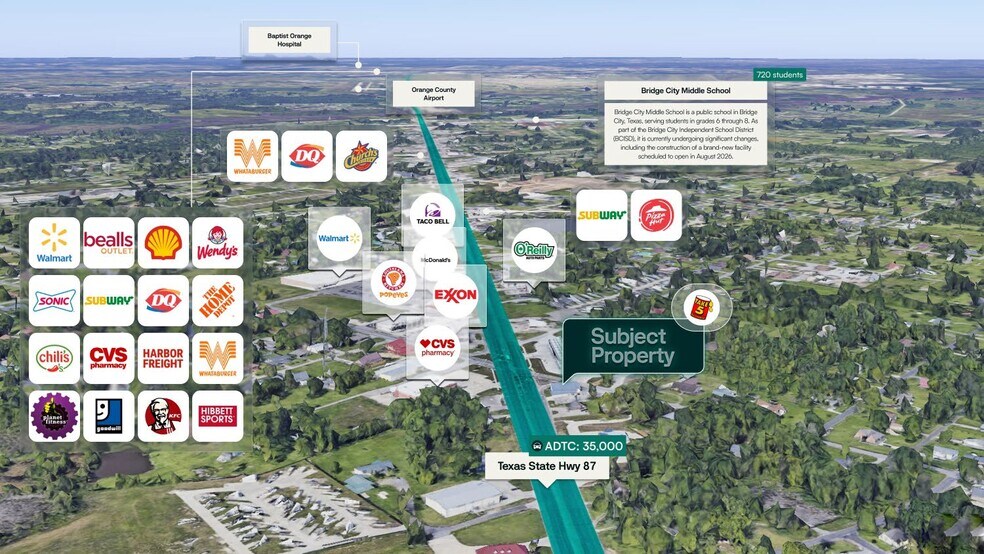 Surmount is pleased to present the exclusive listing for a Take 5 Oil Change located at 490 Texas Avenue, Bridge City, TX 77611. The site consists of roughly 1,415 rentable square feet of building space on an estimated .31-acre parcel of land. Take 5 Oil Change is subject to a 20-year Triple Net (NNN) lease which will commence upon close of escrow. The annual rent will be $120,000 and has scheduled increases of 1.50% Annually.