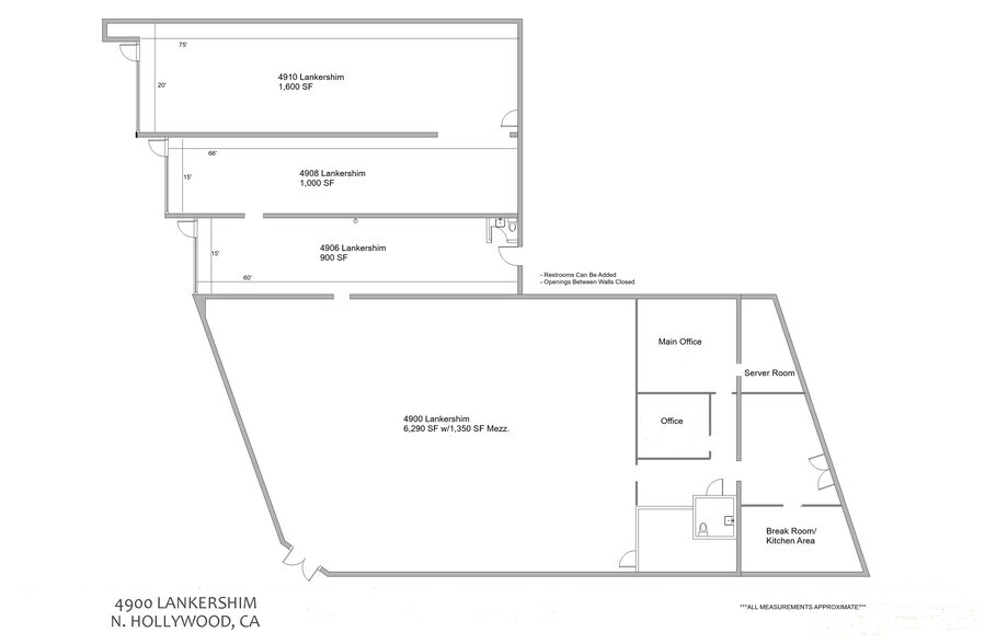 6,290 Sq. Ft. Hard Corner Retail Space in the Heart of NoHo Arts District Can be Combined with 3,655 Sq. Ft. at 4906 Lankershim for a Total of 9,945 Sq. Ft. 14' Clearance Height Renovated in 2018 93 Walkability Score, 25K Car Per Day Traffic Count, $105K+ Household Income in 2 Mi. Radius 110'+ of Window Lined Frontage Along Lankershim Blvd. Currently Vacant & Ready for Immediate Occupancy Offices, Break Room, Kitchen, and Restroom Includes Approximately 1,350 Sq. Ft. of Finished Office Mezzanine Located at the Gateway to NoHo Arts District at SE Corner of Lankershim & Huston Located Between Riverside Dr. & Magnolia Blvd. NoHo Business Improvement District (BID) State Enterprise Zone