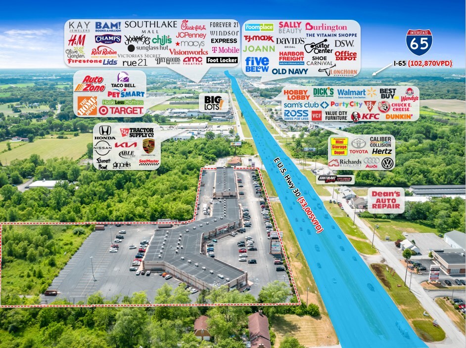 Southlake Retail Center is a well-positioned retail property in Merrillville, Indiana, offering excellent visibility along US Highway 30, which sees over 53,000 vehicles daily. The center benefits from a strong regional draw, with major retailers such as Sam’s Club, Walmart, and Hobby Lobby nearby. The property features a diverse tenant mix, including Anytime Fitness, Midwest Express Clinic, and El Salto Mexican Restaurant, creating a steady flow of customer traffic. The center offers multiple spaces ranging from 1,000 to 5,500 square feet, making it suitable for a variety of retail or office users. Ample parking and high traffic volumes enhance accessibility and convenience for customers. Its location within a dense retail corridor ensures strong co-tenancy and exposure, making it an attractive option for businesses seeking a high-visibility site.