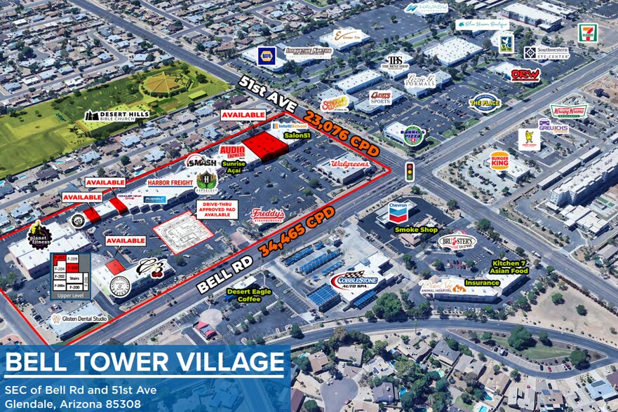 Situé à quelques minutes du Arrowhead Town Center, le principal centre commercial régional de West Valley • Plus de 57 000 véhicules par jour (CPD) passent devant le site, entouré de développements commerciaux et résidentiels denses • Les rénovations récentes du centre améliorent l'attrait visuel et attirent davantage de clients • Harbor Freight, Fry’s, Walmart, Planet Fitness et d'autres commerces à proximité